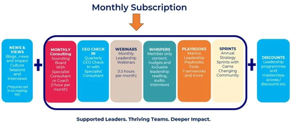 Provides leaders with up to 15 hours of consultancy per month to help leaders navigate any of number of organisational priorities or complexities they may encounter during the month.